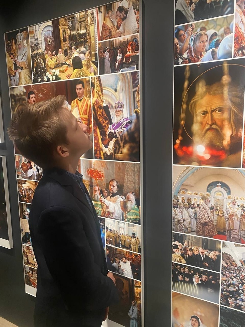 Ребята с интересом рассматривали фотографии, сделанные на богослужениях и различных мероприятиях с участием первосвященника в разных уголках России, мира, а также в родном Нижнем Новгороде и Дивеево. В экспозиции фотовыставки еще были представлены экспонаты из дома-музея Патриарха в городе Лукоянове о его деде Василии Степановиче Гундяеве.