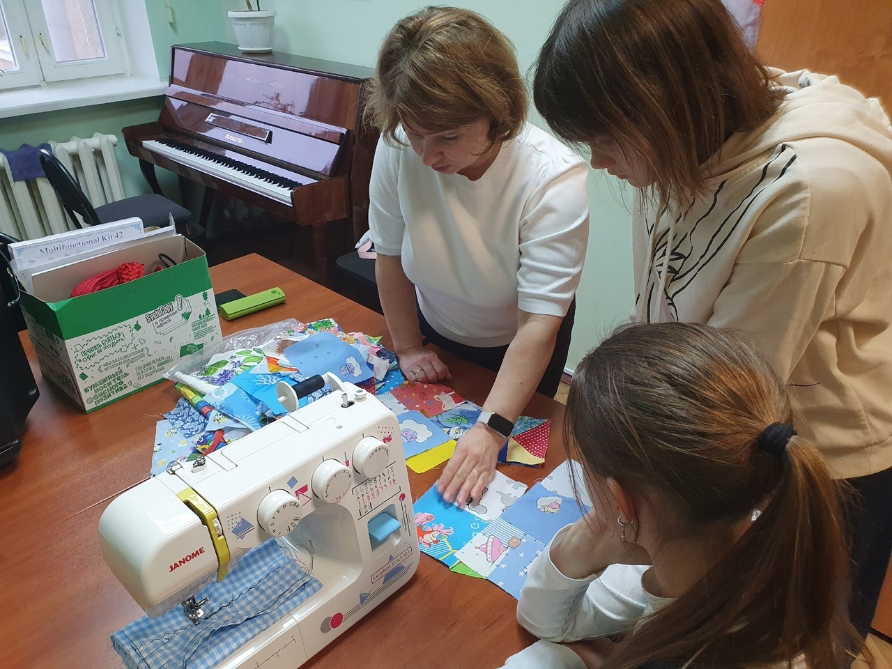 На первых встречах девочки знакомились с устройством швейной машинки и оверлока, получали теоретические знания о работе данных приборов. Но, конечно же, рукодельницам не терпелось перейти к практике и что-нибудь пошить. Сейчас творческая группа работает над изготовлением реквизита для театральных постановок.