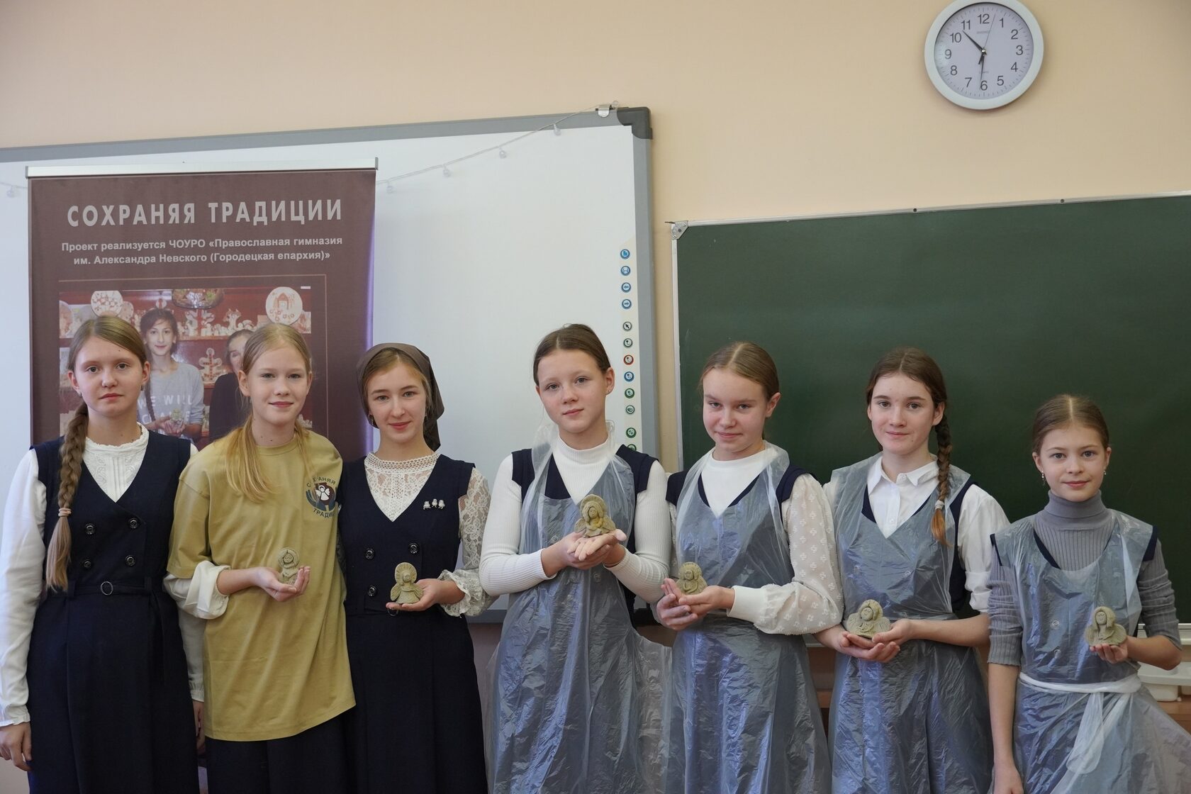 11 ноября 2025 года ученики 5 класса стали участниками мастер-класса по изготовлению глиняной игрушки. Пятиклассники под чутким руководством Елены Алексеевны Малышевой, гимназисток Православной гимназии св. Александра Невского и наших семиклассниц лепили ангелочков. Все фигурки получились разными, но одинаково милыми и выразительными, как и сами юные керамисты.